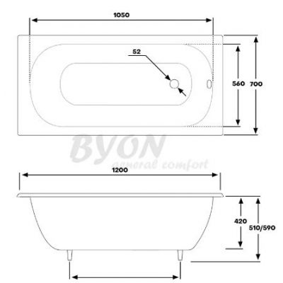 Чугунная ванна Byon 13 120х70 прямоугольной формы с антискользящим покрытием. Модель с овальной купелью и компактными габаритами отличной подойдет для маленькой ванной комнаты.