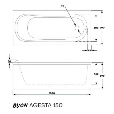 Agesta 150x70 - акриловая ванна с современным дизайном. Изготовлена из высококачественного акрила. Акрил является гигиеничным материалом, обладает высоким уровнем прочности. Поверхность глянцевая и всегда сохраняет первоначальный цвет.