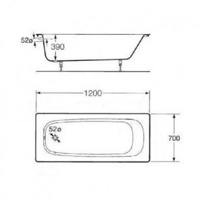 Чугунная ванна Byon 13 120х70 прямоугольной формы с антискользящим покрытием. Модель с овальной купелью и компактными габаритами отличной подойдет для маленькой ванной комнаты.