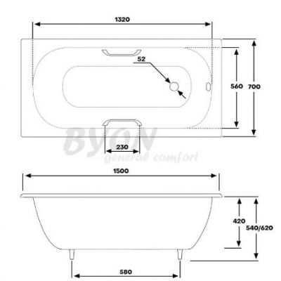 Чугунная ванна BYON 150x70 отлично сохраняет тепло, что идеально для полноценного расслабления.
